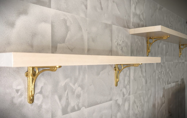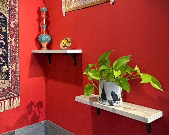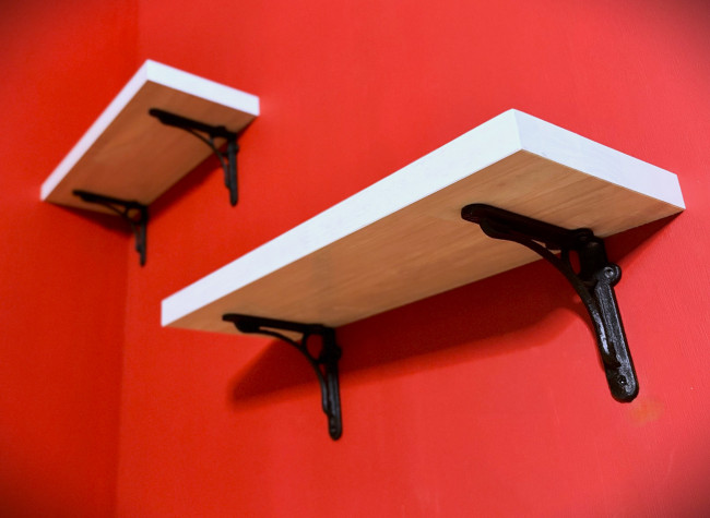 カラーによって雰囲気が変わるアイアンブラケットのウォールシェルフ